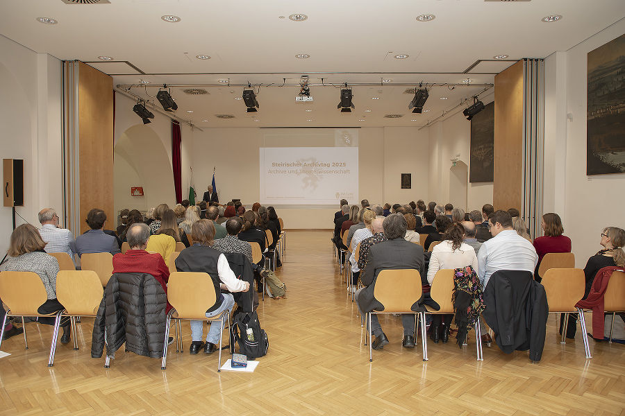 Am 15. Oktober 2025 fand der 17. Steirische Archivtag unter dem Motto „Archive und Theaterwissenschaft" im Wartingersaal des Steiermärkischen Landesarchivs statt. Landesarchivdirektor Hofrat Mag. Dr. Gernot Peter Obersteiner konnte wieder zahlreiche interessierte Gäste aus dem In- und Ausland, darunter als Ehrengäste Frau Landesrätin Mag. Dr. Claudia Holzer, den Geschäftsführer der Bühnen Graz Mag. Bernhard Rinner, den Leiter des Historischen Archivs in Cilli (Celje) Dr. Borut Batagelj, den Leiter der Abteilung 3 des Landes Steiermark Mag. Florian Tunner und den Landesarchivdirektor a. D. Hofrat Dr. Josef Riegler begrüßen.