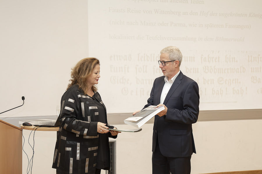 Neben der Präsentation des Jahrbuches 8 (2025) gab es mehrere Vorträge, die sich sowohl geschichtswissenschaftlich und quellenorientiert als auch praxisbezogen mit dem Thema Theater auseinandersetzten. Den Anfang machte Priv.-Doz. Mag. Dr. Elke Hammer-Luza, die in ihrem Vortrag einen spannenden historischen Überblick über die Grazer Spielstätten vom ersten ständigen Theater am Tummelplatz bis zum Grazer Opernhaus gab und hierzu auf viele bildliche Darstellungen zurückgreifen konnte. Assoz.-Prof. Mag. Dr. Christian Neuhuber machte sich anschließend in seinem Vortrag auf die Suche nach den Ursprüngen des Faust-Stoffs und präsentierte neue Funde zum berühmtesten Berufstheaterstück des 17. Jahrhunderts, insbesondere aus dem Schlossarchiv in Krumau (Český Krumlov).